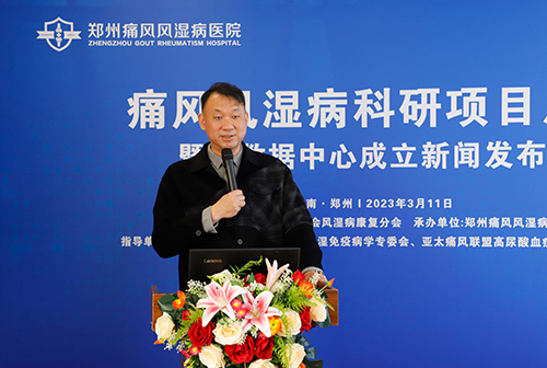 3月11日上午,郑州痛风风湿病医院“痛风风湿病科研项目”启动暨大数据中心成立新闻发布会在我院门诊一楼举行。