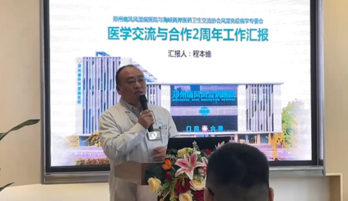 4月27日,郑州痛风风湿病医院与海峡两岸医药卫生交流协会风湿免疫病学专委会医学交流与合作2周年工作汇报在医院隆重召开。